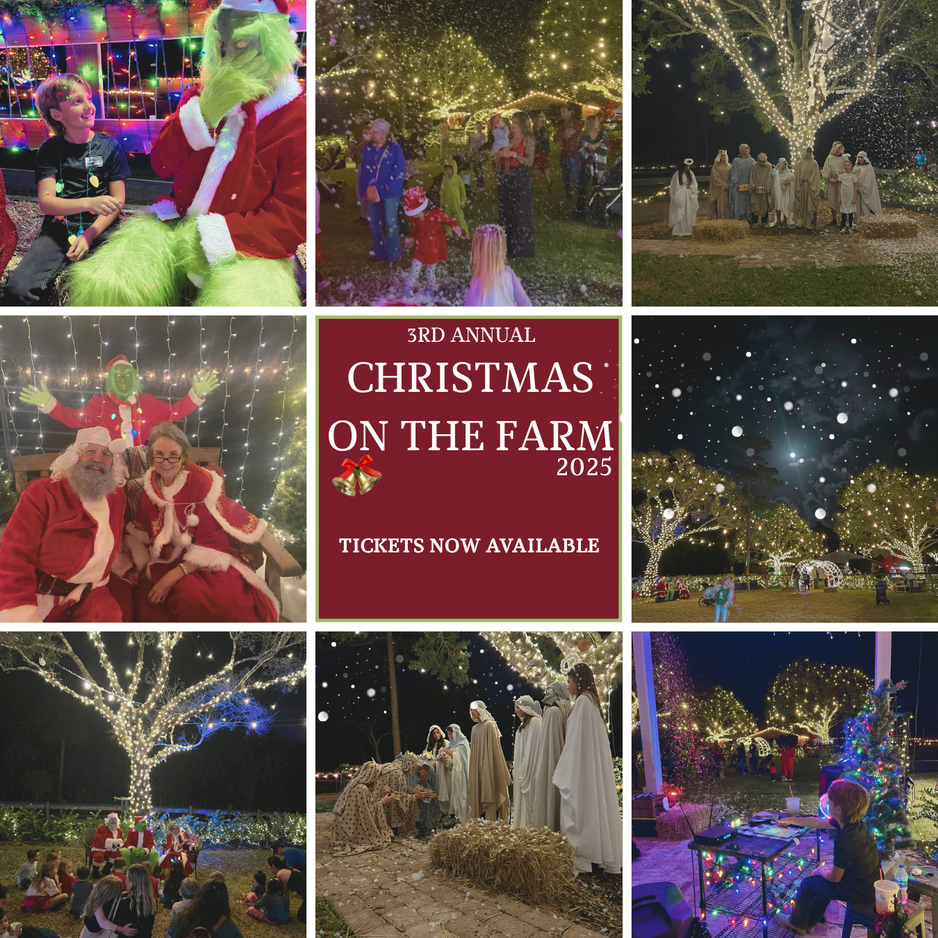 Christmas on the Farm at King’s Stables Farm in Jupiter FL, is a magical, interactive holiday experience for the whole family, featuring Live Nativity, Santa, the Grinch, Cindy Lou Who, hayrides, snowfall, lights, games, and more. Make memories, start traditions, and help us save Christmas on the Farm.